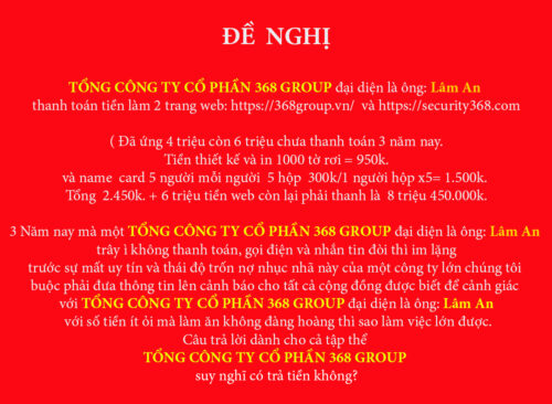 thanh toán tiền làm 2 trang web: https://368group.vn/ và https://security368.com